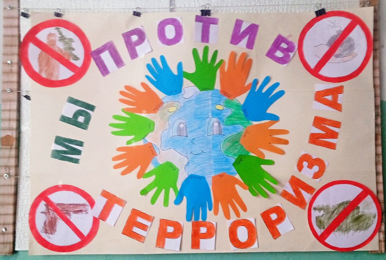 В нашей группе в Международный день солидарности в борьбе с терроризмом была проведена адаптированная беседа с детьми, в ходе которых дошкольники узнали, кто такие террористы, что такое терроризм, его последствия. Разобрали, как надо себя вести на улице с посторонними людьми и что надо делать при обнаружении подозрительных предметов. Дети узнали историю этой даты. Дошкольники почтили память минутой молчания. Итогом стала коллективная работа в виде плаката "Мы против терроризма". | |